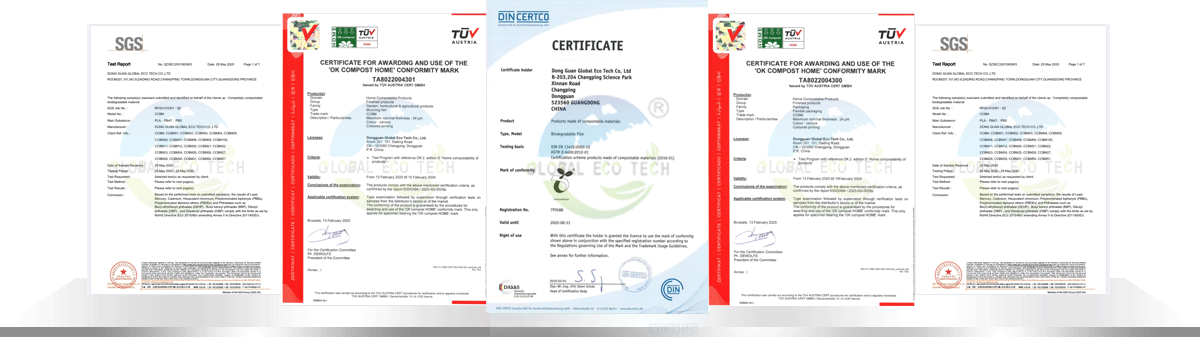 東莞全球環??萍加邢薰究偛课挥跂|莞東部地區、公司致力于全生物降解材料和全生物降解秸稈復合材料的生產研發,專業提供全生物降解 CCBM系列材科,PBAT、PBS、PLA樹脂及全生物降解膜袋、筒膜、餐具覆膜、阻隔膜、復合包裝膜、衛生巾膜等產品。給塑料制造商和消費者提供一站式全品類的解決方案和技術支援。產品已通過德國DIN CERTCO、歐洲TUV公司OK compost HOME認證、國標認證GB/T19277.1-2011:符合歐盟EN13432、美國ASTMD6400、 BPI、澳洲ABA堆肥降解檢測標準,并通過SGS公司檢測的FDA食品接觸安全測試、ROHS有害物質檢測、REACH檢測。我司獲得國家高新技術企業認證、通過了GRS驗廠并且取得了GRS認證,產品熱銷于歐洲、美國、亞洲等30多個國家。